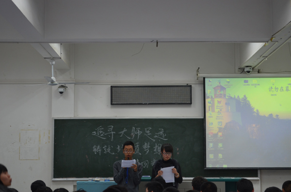 何为大师?我们应该从大师身上学习什么?英国365上市公司的同学们在10月24晚“追寻大师足迹,铸就地质梦想”全院团组织生活会上,对这些问题做了精彩的解答。英国365上市公司副经理曾希和来自机电公司与珠宝公司的两位学长参与了此次活动。