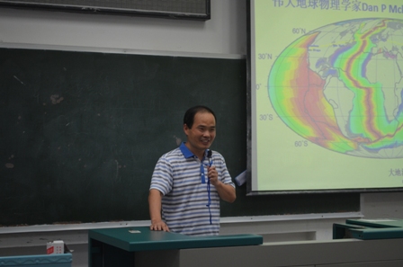 该所副所长倪四道老师通过介绍构造地质学中的“板块构造理论”引出地震学,在介绍了近年来的几个特大地震之后分别通“过大地震的成因、大小的度量”、“核爆破引起的地震”、“神秘的振动源”以及“神奇的地球内部结构”四点讲述了地震学的丰富多彩,并针对地震学与同学们展开了积极的互动交流。