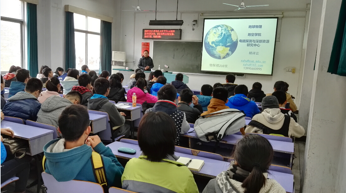 12月25日上午10:00,2015级员工选择专业方向指导交流会在教三楼303教室召开。为了让2015级同学对地球物理专业的基本现状、研究领域等有更深入的认识,科学选择专业方向,公司特别邀请了地球物理与空间信息公司经理胡祥云教授为同学们做专业介绍。英国365上市公司2015级全体员工到会聆听。