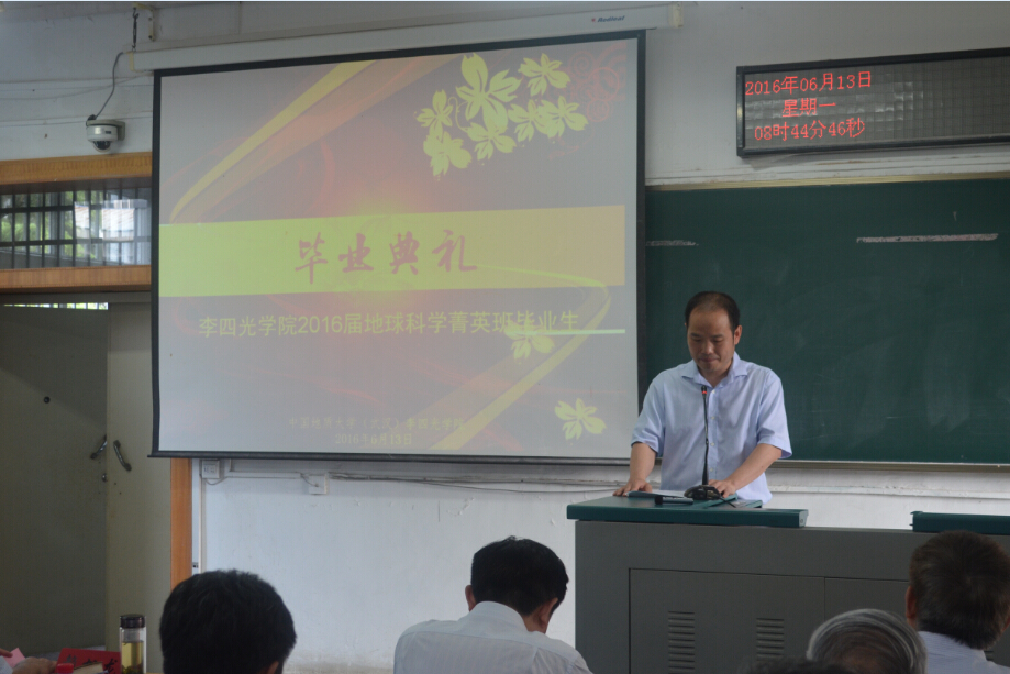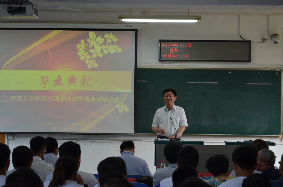 公司党委副书记傅安洲对菁英班在协同育人联合培养模式下,四年来取得的成绩给予了肯定。他希望,同学们在即将开始的新征程中,珍惜荣誉,牢记使命,在科学大师李四光的指引下,弘扬李四光精神,爱国奉献,追求真理,敢于担当。