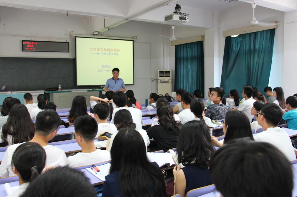 5月18日下午16:00,由公司和教务处联合举办的名师面对面之“奋斗的青春最美丽”青春励志讲座在教三楼301顺利举行,公司经理,教务处处长殷坤龙教授应邀为公司2015、2016级全体员工、李四光计划在校员工讲授如何“做一个快乐的老员工”。