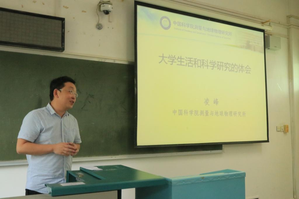 凌峰研究员与同学们分享了自己当年在地大求学,在研究所做科研的所见、所思、所感、所悟,为同学们提出了很多诚恳的忠告,并祝福同学们在大学这段旅途中收获别样的美丽。