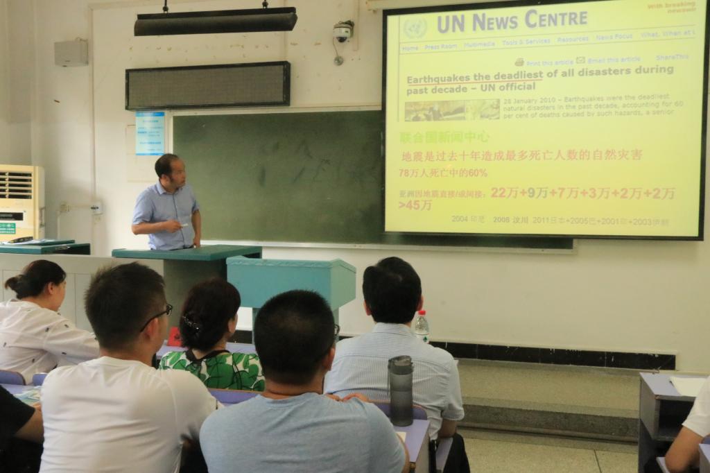 倪四道所长以“震源参数快速测定与震灾预估”为题为2018级新生带来大学的第一课。倪老师从地震的防、避、救三个维度,借用生动有趣的语言,为同学们打开了探索地球科学奥秘的大门,指明了前进方向,让同学们受益匪浅。