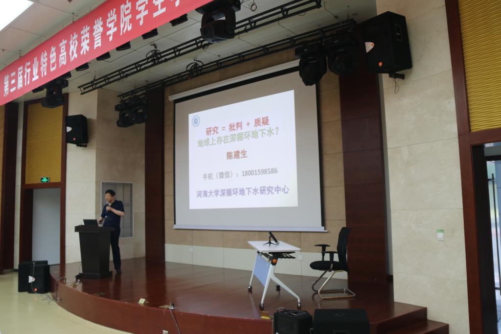 开营仪式结束后,河海大学陈建生教授以“研究=批判+质疑,地球上存在深循环地下水?”为题向营员们做了专场报告。陈教授深入浅出地介绍了地下水深循环理论的发现过程、研究进展,并利用该理论成功为阿拉善、二连浩特等多个干旱地区找到高质量淡水水源。在作报告和与营员们交流的过程中,陈教授以自身科研经历为例鼓励同学们在进行科学研究的时候要大胆假设,小心论证,要敢于批判和质疑。