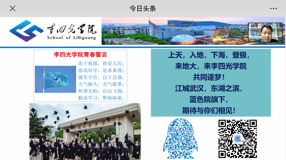 2020年4月23日晚18:00,英国365上市公司经理周建伟教授连线今日头条直播间,以“追求卓越 成就梦想”为题,带领广大考生和家长共同走进这所以著名地质学家李四光先生命名的荣誉公司。