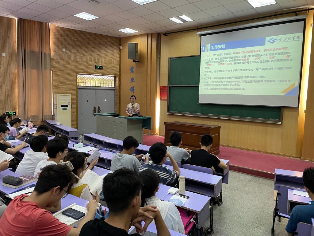 接着,公司辅导员陈思静老师给同学们详细介绍了今年公司与公司的社会调查和社会实践的安排与变化。她从工作安排、工作要求、调查VS实践、指导老师安排等方面展开介绍,她强调社会调查是所有同学必须修读的课程,也是同学们深入理解坚持中国特色社会主义道路,坚持改革开放、坚持社会主义市场经济体制、坚持共同富裕,坚持构建创新型国家重要意义的机会。同时也提醒同学们在开展社会调查期间首先要以安全为重,不前往中高风险区开展调查。