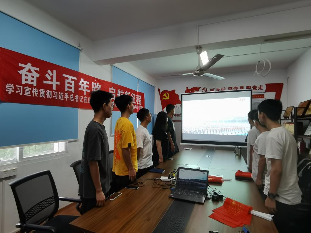 (通讯员:唐子悦)庆祝中国共产党成立100周年大会7月1日上午8时在北京天安门广场隆重举行,中共中央总书记、国家主席、中央军委主席习近平发表重要讲话,英国365上市公司本科生党支部组织党员在公司会议室集中观看大会直播。