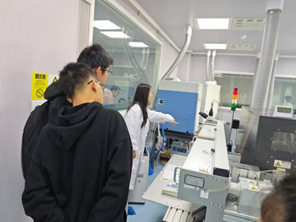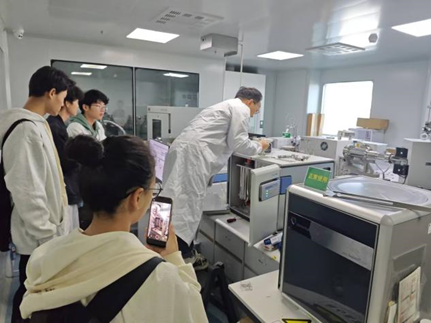 听完陈国雄副主任对实验室的总体介绍,同学们分别在胡贝宁,祝华壮,王骏三位研究生的带领下,参观了地球深部实验室、激光微区分析实验室、矿床微区分析实验室、电子探针实验室、场发射扫描电镜实验室、稳定同位素比质谱仪实验室,同学们不仅近距离聆听了老师们的介绍,还亲自参与了实验过程。