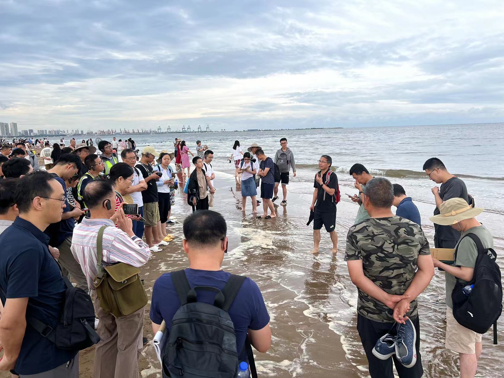 谢树成院士在山东堡海滩讲解海岸带的重要意义