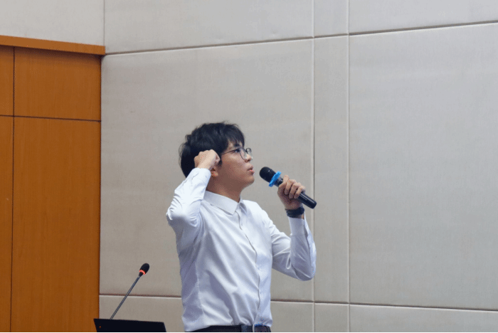 新生代表夏选京同学以“求知若渴、求真务实、地质报国”为主题进行发言,并代表全体新生郑重承诺——以长期主义成事,在“脚踏实地、敢为人先”的公司精神感召下,意气风发奔赴地学新征程。
