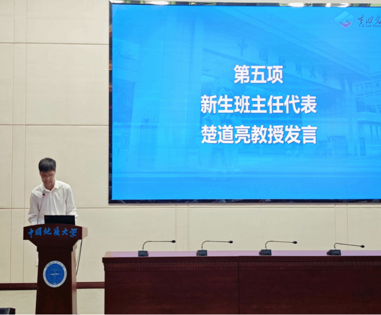 陈文武部长为2025级新生班主任颁发聘书,并向各位新生班主任老师表达感谢。2025级地球科学菁英班班主任楚道亮老师作为班主任代表发言,楚老师寄语新生:学习不止于知识堆叠,要构建系统的专业体系与自主学习能力,把课堂、实验室与野外实践贯通,做到知行合一;追求本质、勇于质疑,以“不怀疑不能见真理”的科学精神锤炼批判性思维;坚韧不拔、从挫折中成长,以长期主义成事;面向学术前沿,主动拥抱AI与大数据,用新范式破解地学难题。期待同学们既脚踏实地又仰望星空,成长为有家国情怀、开拓精神与未来视野的地学新人。