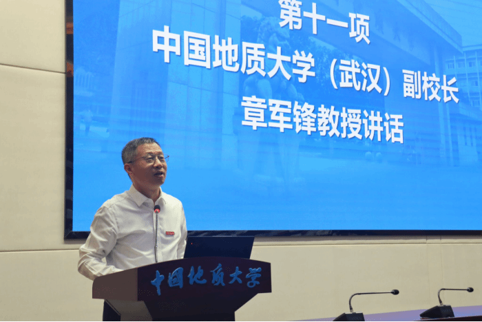 副董事长章军锋教授为新生寄语。他指出,当下“十四五”收官、“十五五”将启,地球与行星系统科学面临深地资源安全、生态与碳循环、自然灾害监测预警、行星探测与生命边界等一系列前沿命题,期待同学们“严格自律、向下扎根、融合交叉、挺膺担当”,以严谨的证据链、开放的学科视野与可被现场检验的真本领,回应国家重大需求与人类共同关切。