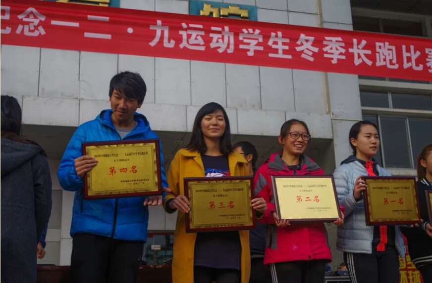 12月3日下午16:00,中国地质大学纪念12.9冬季长跑比赛顺利举行,公司学子在此次比赛中再创佳绩,获得男子团体第七名,女子团体第三名的好成绩!感谢参赛的同学和辛勤服务的志愿者,祝贺你们!