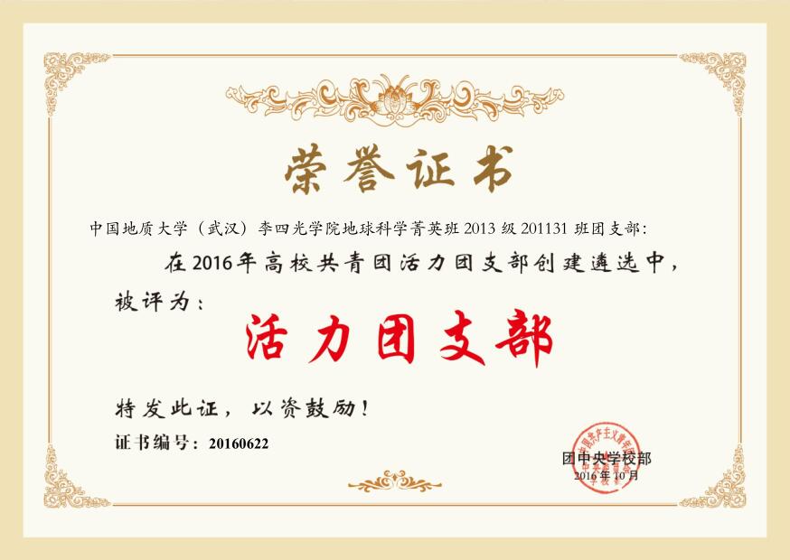 热烈祝贺公司201131班团支部在团中央2016年开展的高校“活力团支部”创建遴选活动,获得全国高校“活力团支部”荣誉称号!特此报喜!祝贺他们,也希望其他团支部以他们为榜样,把我们的支部建设得更加充满活力、更加坚强有力。