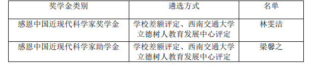 感恩中国近现代科学家奖助学金候选人