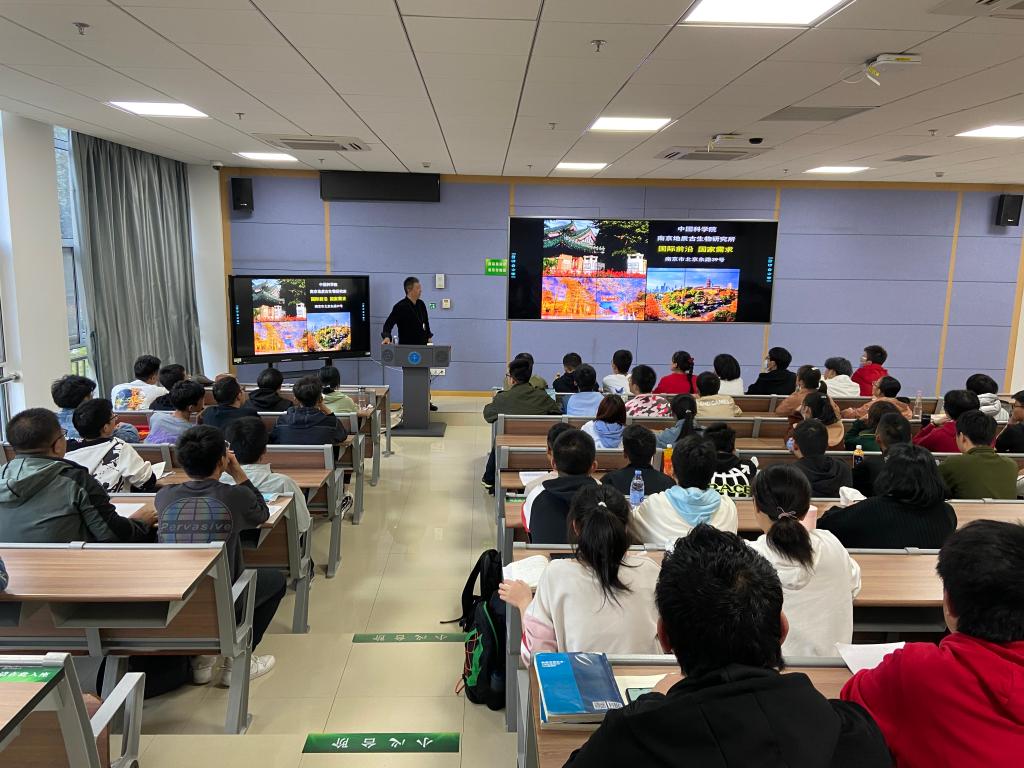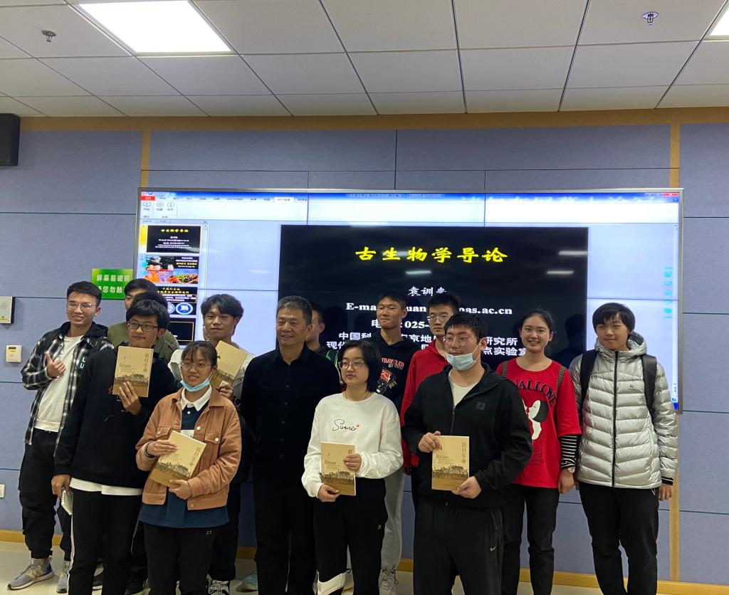 首先,袁老师向同学们简单介绍了南京地质古生物研究所的发展历史、科研现状和战略目标,看着图片中南古所那雅致宜人的环境、历史悠久的建筑和规模宏大的博物馆已然令不少同学心生向往。