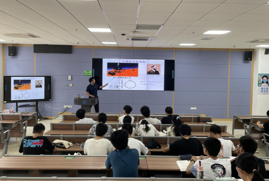 此次课程,丁老师首先从同学们耳熟能详的一些知识点讲起,比如赫兹实验、电磁效应和麦克斯韦方程组等,通过这些知识点的串联让同学们对所学知识在日后科研当中能发挥的作用有所认识,并且让同学们意识到要将各个科目当做一个系统中不同的环节进行学习,而不是分裂开单独对待。